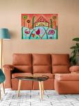 Veselé a hravé scenérie lákajú snívať o živote a jeho krásach, jedinečných výtvoroch človeka a prírody. Obraz pozdvihne a rozžiari každý interiér.Obraz je maľovaný aj po bokoch napnutého plátna, takže nie je potrebné rámovať.