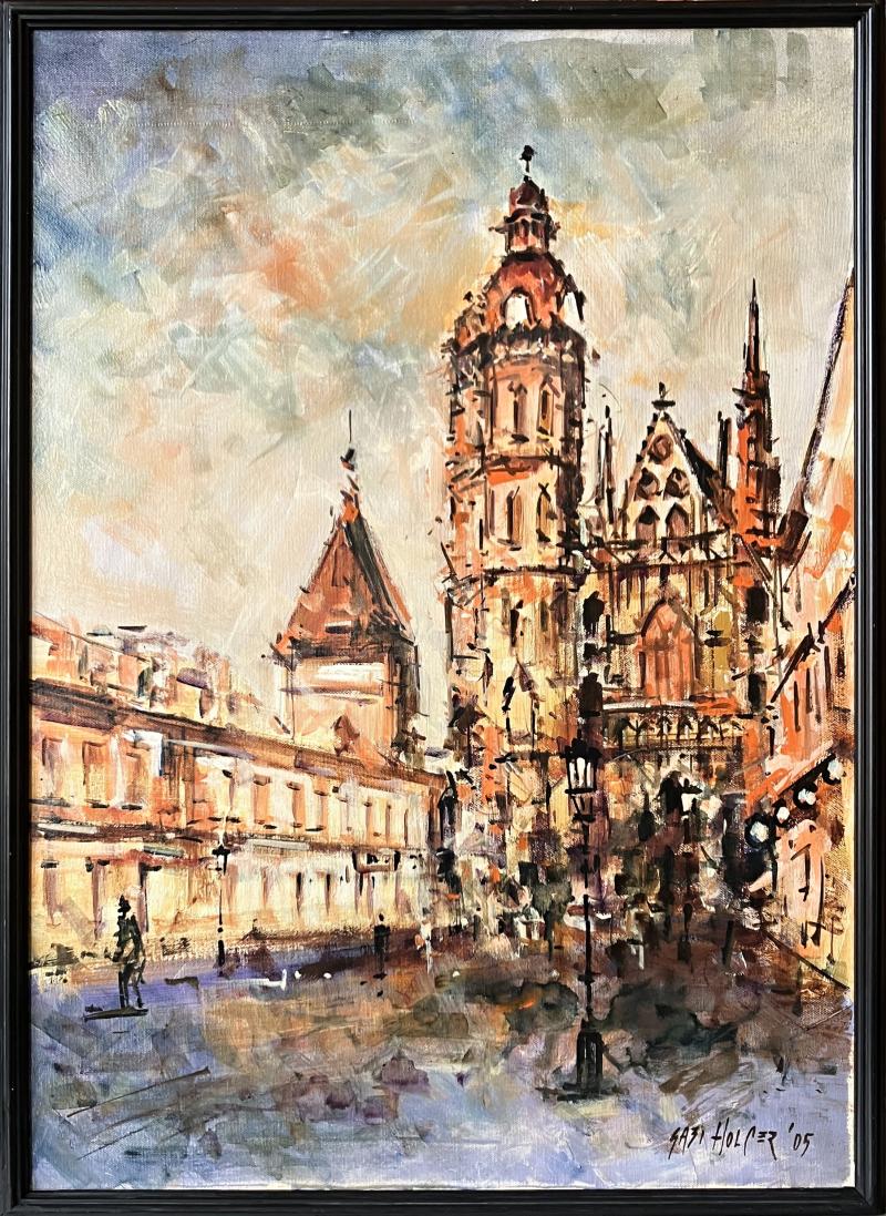 Autor: Gabriel Holcer Názov diela: "Dóm svätej Alžbety v Košiciach" Technika: olejomaľba na plátne Rozmer diela: 70 x 50cm Rozmer diela v ráme: 74 x 54cm Rok vzniku: 2005 Signovaný