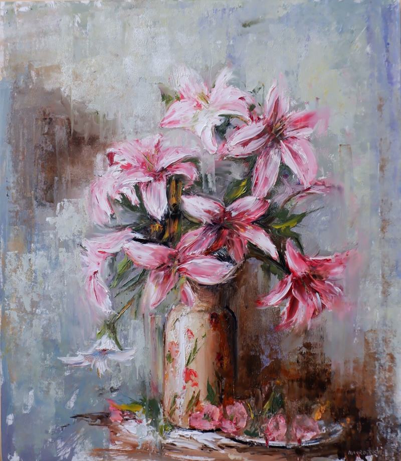 Kvety v hlinenej váze Autor: Igor Navrotskyi Rozmery: 60 x 40 cm Značenie: vpravo dole Cena: 230 € |