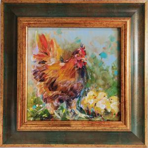 Akryl na plátne + rám tmavozelenej farby, rozmer s rámom 32x32cm