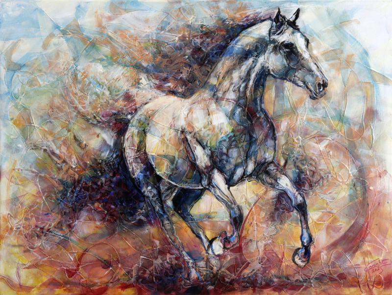 Kombinovaná technika na platne, obraz netreba rámovať, dá sa rovno zavesiť na stenu.Maľba pokračuje aj na bočných stranách rámu/po bokoch obrazu (plátna).