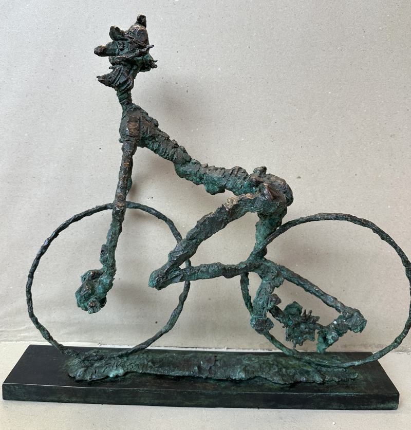 Tak trocha bláznivá bronzová plastika cyklistu.Dôležité informácie: