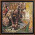Predvianočný rybí trh Autor: Štefan Filep Rozmery: 37 x 37 cm, s rámom: 43 x 43 cm Značenie: vpravo dole Cena: 930 € | Voľný predaj |